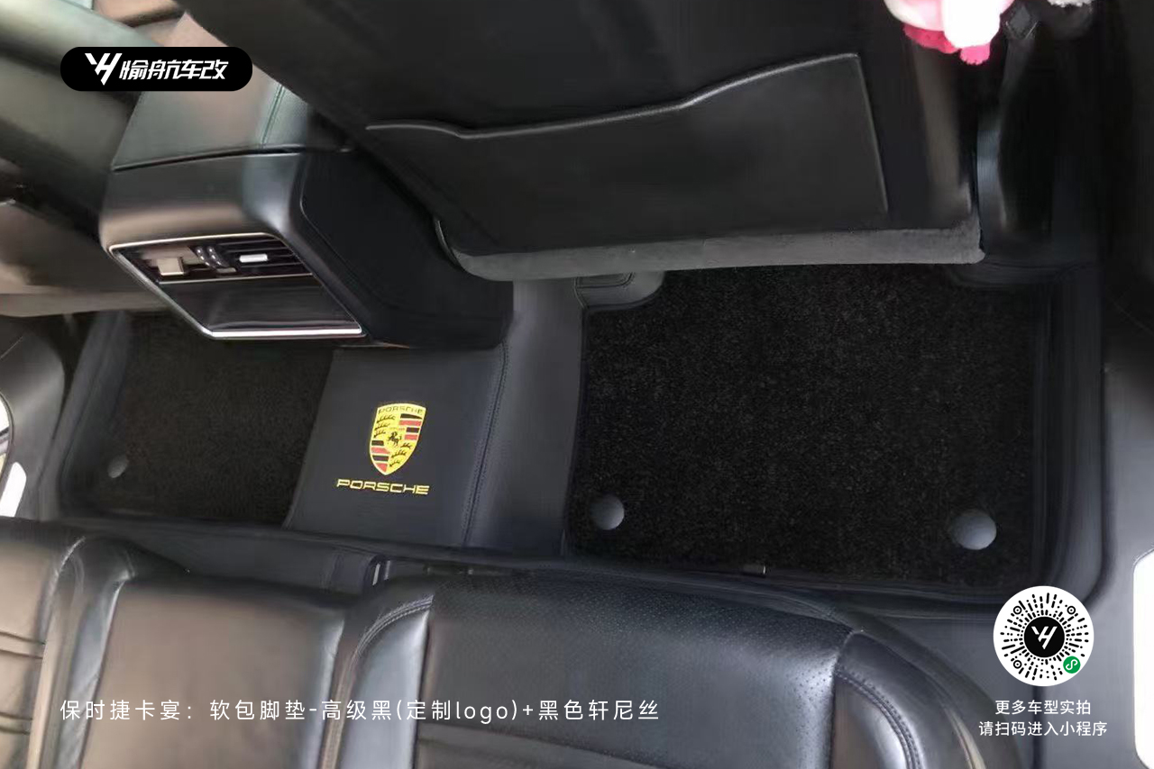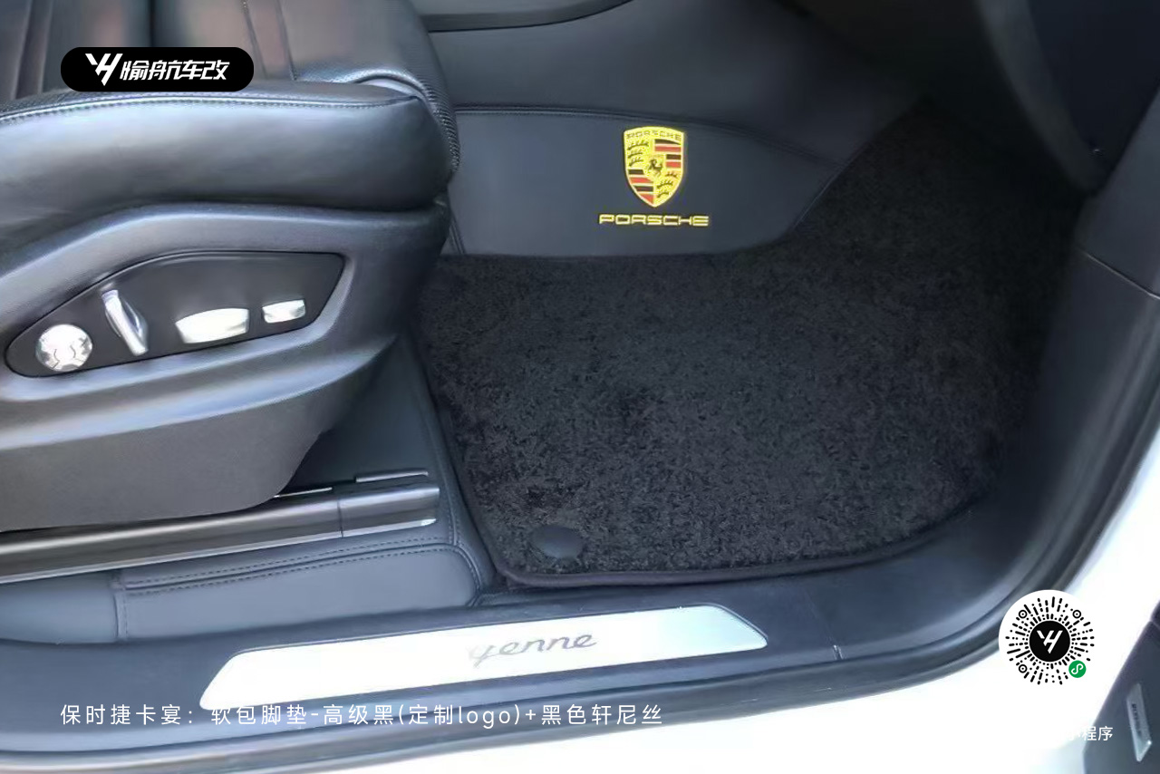 保时捷卡宴|YH愉航-软包脚垫:高级黑(定制logo)+黑色轩尼丝